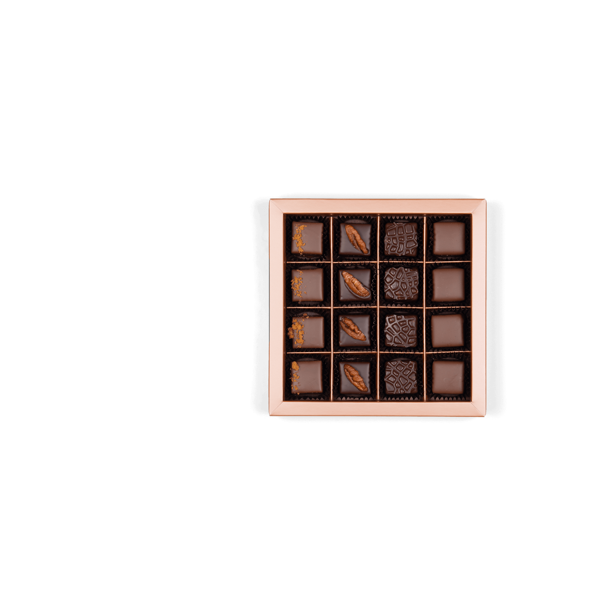 A selection of 16 chocolates made with our home-made “Praliné d’antan” and the finest Piemontese gianduja.