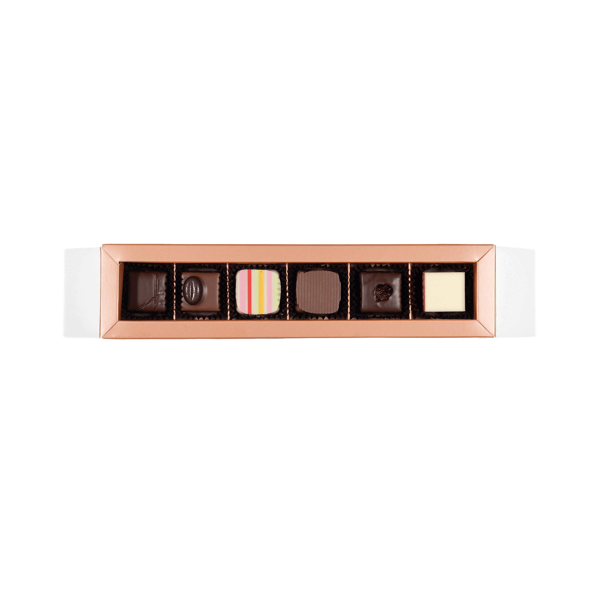 Mees Chocolates’ signature box with an assortment of 6 of our finest creations.