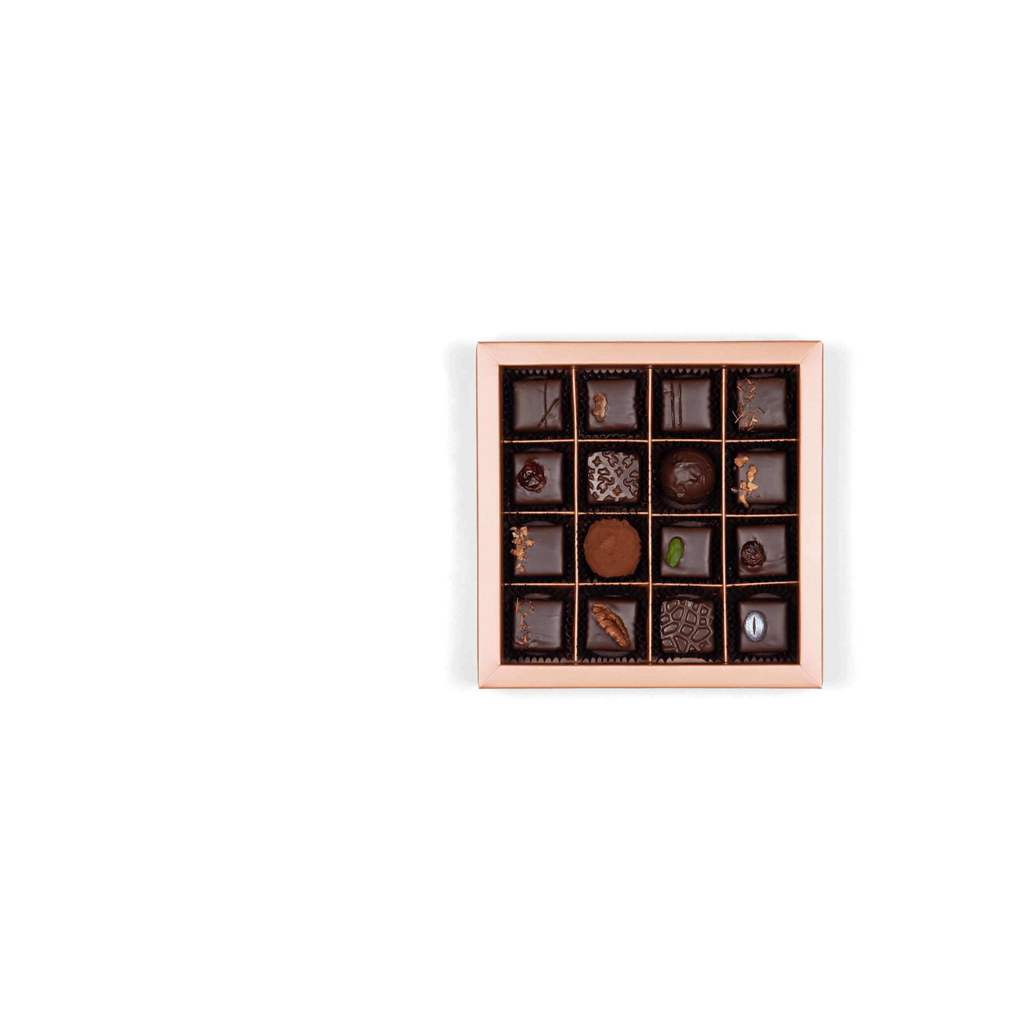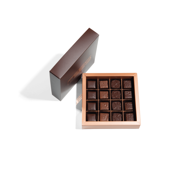 „Signature Box” de la Mees Chocolates pentru iubitorii de ciocolată neagră, cu un sortiment de 16 dintre cele mai bune creații ale noastre de ciocolată neagră.